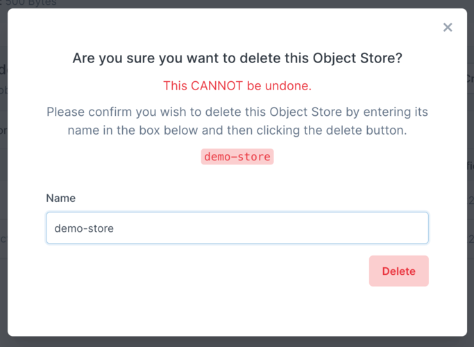 This will prompt you to confirm the name of the store to be deleted as a security measure: