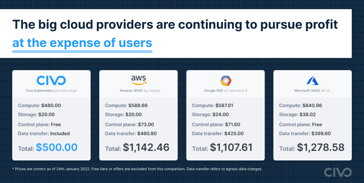 These highly complex billing models can be highly damaging for businesses. In the search for sustainable growth, organisations rely on accurate cost planning. This can easily be put at risk if a business faces recurrent unexpected bills from cloud providers for simple, core functions of cloud computing like data transfer or compute.